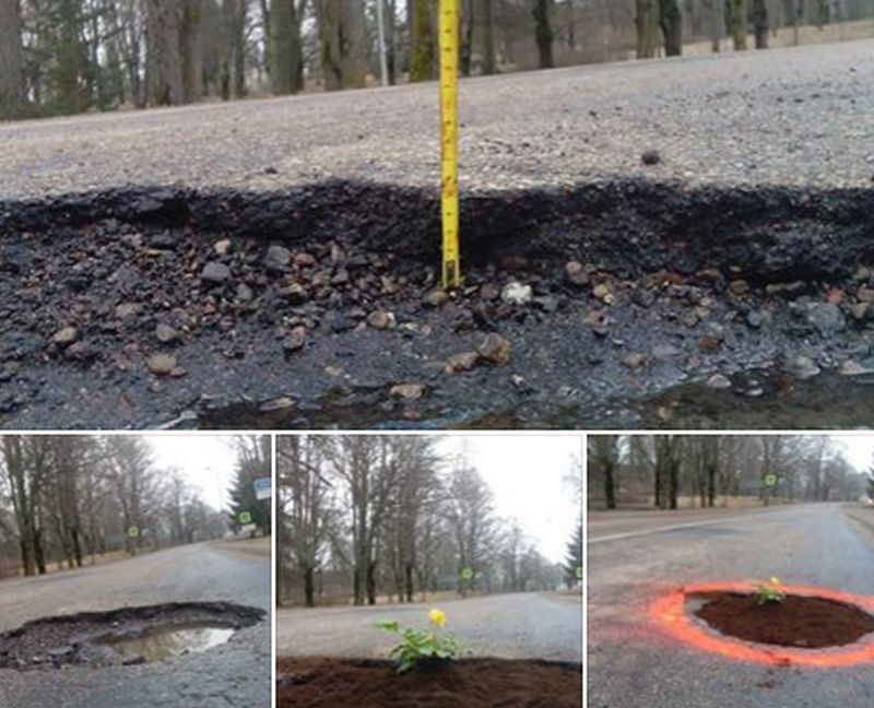 Kamēr, iespējams, daļa no mums vien sūkstās par to, ka atsevišķos ceļa posmos ceļi nav pietiekami labā stāvoklī, tikmēr citi meklē risinājumu. Piemēram, Ziedonis Zommers sociālajā tīklā facebook publicējis attēlus, kuros redzams, ka pie Kalvenes kāda milzīgā bedrē sastādītas puķes.