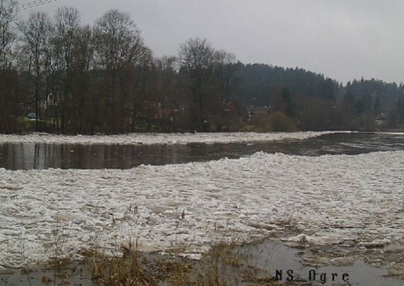 Ogres upes lejtecē aizvadītajā naktī ledus iešanas dēļ novēroti ūdens līmeņa kāpumi un kritumi nepilna metra robežās, tomēr ūdens līmenis nav bijis augstāks kā piektdien.