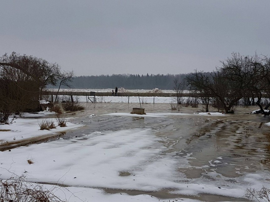 Savukārt jaunākā LVĢMC liecina, ka līdz pusdienlaikam ūdens līmenis pazeminājies par 17 centimetriem, taču joprojām tas ir augsts un saglabājas ledus sastrēgums.