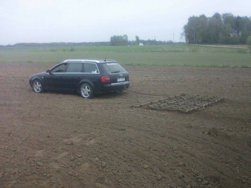 Sociālajā medijā facebook, lapā "Audi Bauska" ir publicēta fotogrāfija, kurā vērojams neparasts skats - lauku traktora vietā apstrādā automašīna.