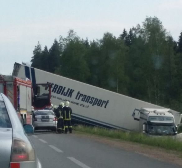 Negadījuma dēļ uz šosejas satiksmes kustība tika ierobežota. Patlaban negadījuma vietā strādā policija.