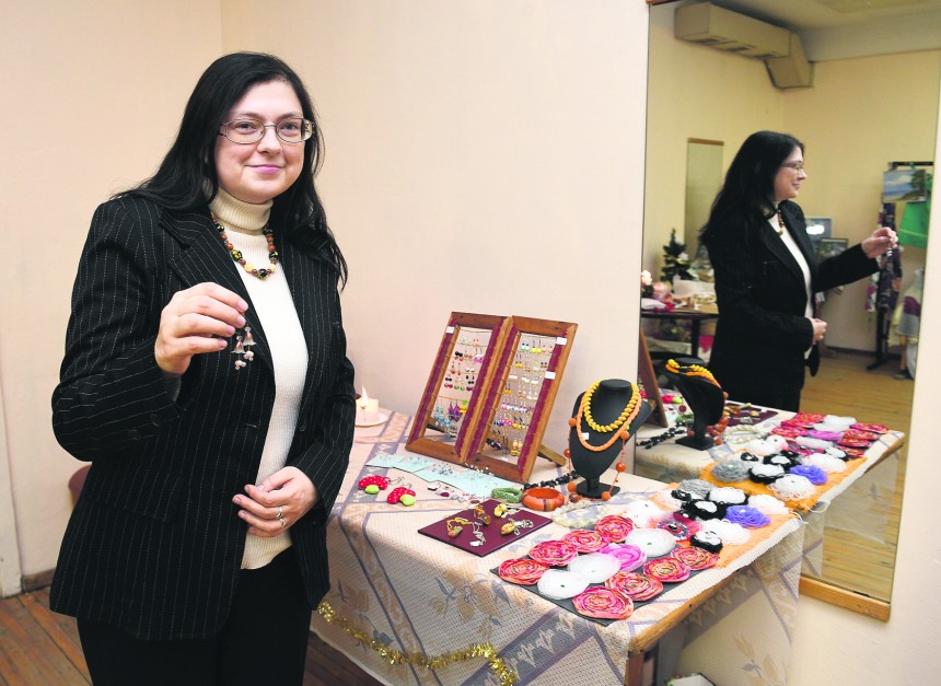 Krāsaināki, svinīgāki, vairāk vasarai piemēroti, ziemas dienā nēsājami - Līga Lukjanska rada visdažādākās noskaņas un stila auskarus un par savām slimībām runāt negrib. Labāk - par auskariem. Izstādei sagatavoti 34 pāri. Ir prieks tos paņemt rokās un apskatīt arī tad, ja pati pircēja nepieder pie auskaru nēsātāju brālības. Atzīstos Līgai, ka tad, kad pati biju ilgstoši slima, nosolījos: kad izveseļošos, izduršu ausīs caurumus un nēsāšu auskarus, bet aizmirsu šo nodomu un tā arī dzīvoju bez ausu rotām. Līga saka: «Nē, tā nevar! Tādā brīdī sev doti solījumi jāpilda!» Un viņai piekrīt citas invalīdu biedrības rokdarbnieces: nākotnes nodomi ir svarīgi, un katram esot kādi plāni, kas jāizdara, jo - jāsteidz dzīvot. «Es katru decembri ap Jaungadu uztaisu sarakstu, vēlams - diviem gadiem, jo vienā gadā viss var nepiepildīties. Spontāni sarakstu kādas simt lietas, ko gribu izdarīt. Šogad pirms mēneša paskatījos - liela daļa ir piepildījusies,» optimistiski atzīst Līga.
