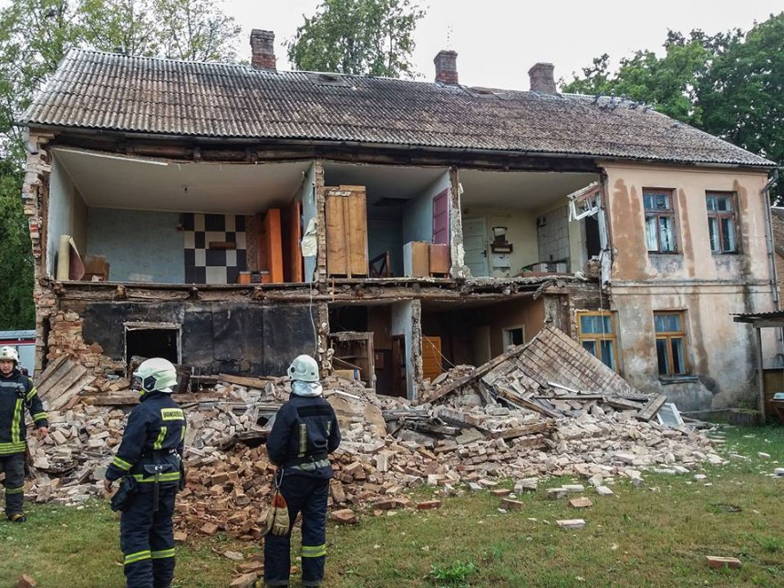 Aculiecinieks sociālajā tīklā Facebook ziņo, ka svētdien Aucē nobrukusi kādas senas divstāvu ēkas siena.