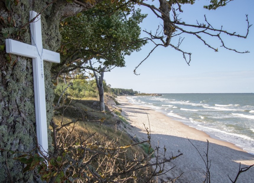 Kā vēsta portāls “liepajniekiem.lv” Karostas pludmalē, kur piektdienas vakarā, nobrūkot krastam, gāja bojā 10 gadus vecs zēns, uzstādīts krusts.