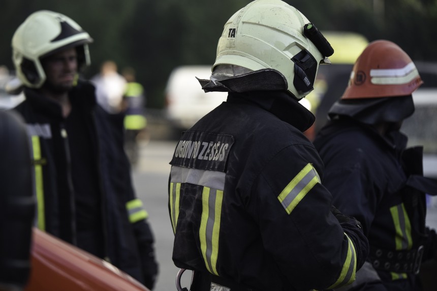 Ugunsdzēsēji patlaban strādā notikuma vietā.