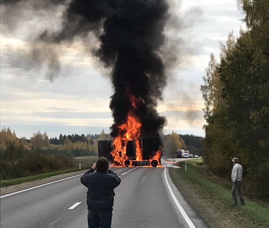 Notikuma aculiecinieki sociālajā vietnē "Twitter" publicējuši attēlus, kuros redzams degošais transportlīdzeklis.