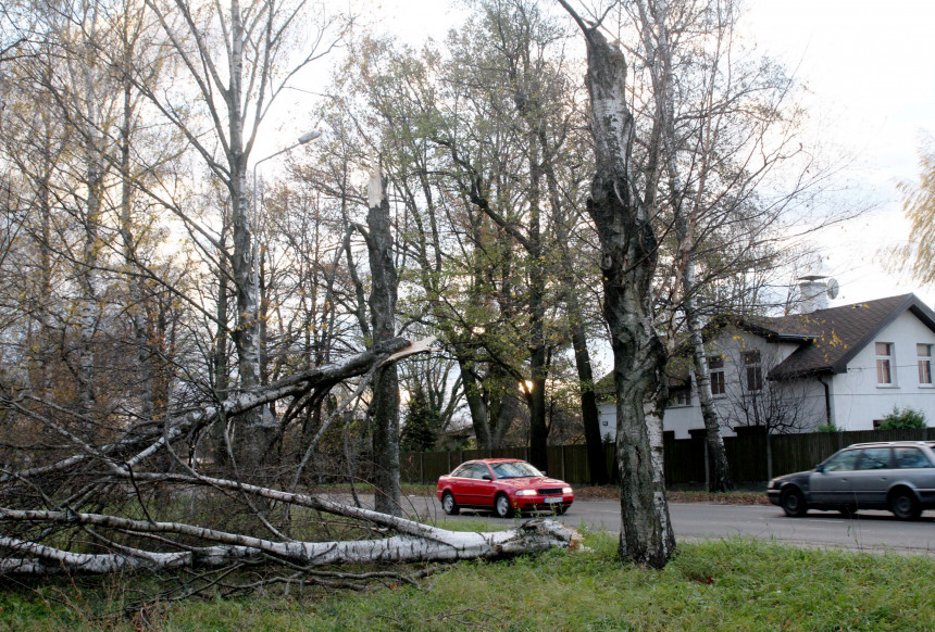 Savukārt Siļķu ielā, krītot kokam, sabojāta automašīnas "Renalt Megane" virsbūve un aizmugurējais stikls.