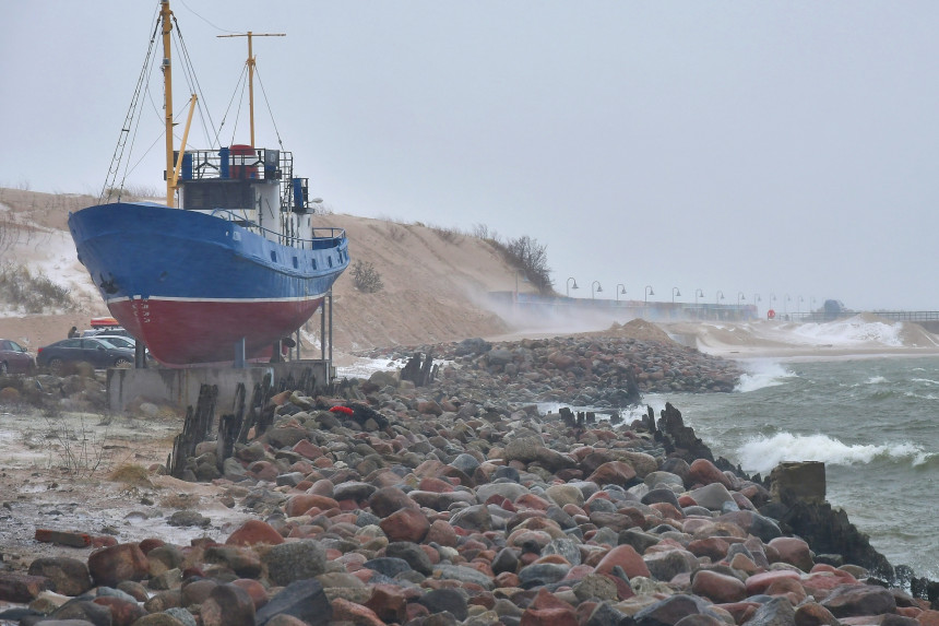 Jau ziņots, ka šorīt Liepājas ostā reģistrētas ziemeļu vēja brāzmas līdz 29 metriem sekundē, un ļoti stiprs vējš pūta visā Kurzemes rietumkrastā.