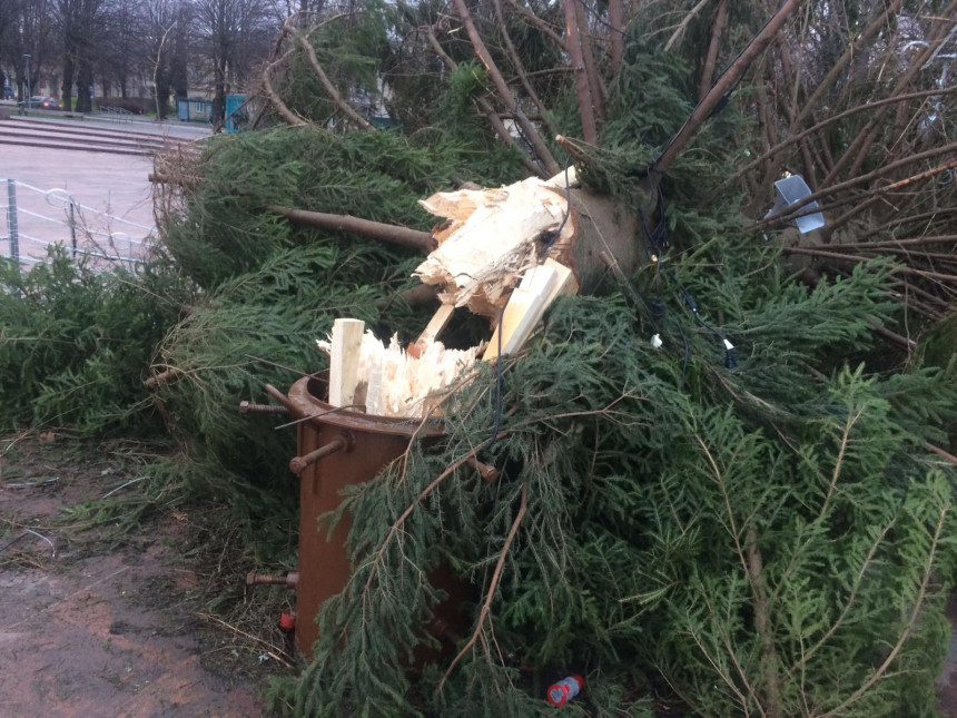 Ventspilī stiprais vējš izpostījis divas svētku egles. Kā aģentūrai LETA stāstīja PSIA "Ventspils labiekārtošanas kombināts" sabiedrisko attiecību speciāliste Agnese Koponāne, nolauzta pilsētas galvenā egle Lielajā laukumā, kā arī apgāzta no mākslīgajiem materiāliem gatavotā egle, kas atradās pie Olimpiskā centra "Ventspils". Patlaban pašvaldībā sasaukta sanāksme, kurā lemj par vēja nodarīto postījumu seku novēršanu.