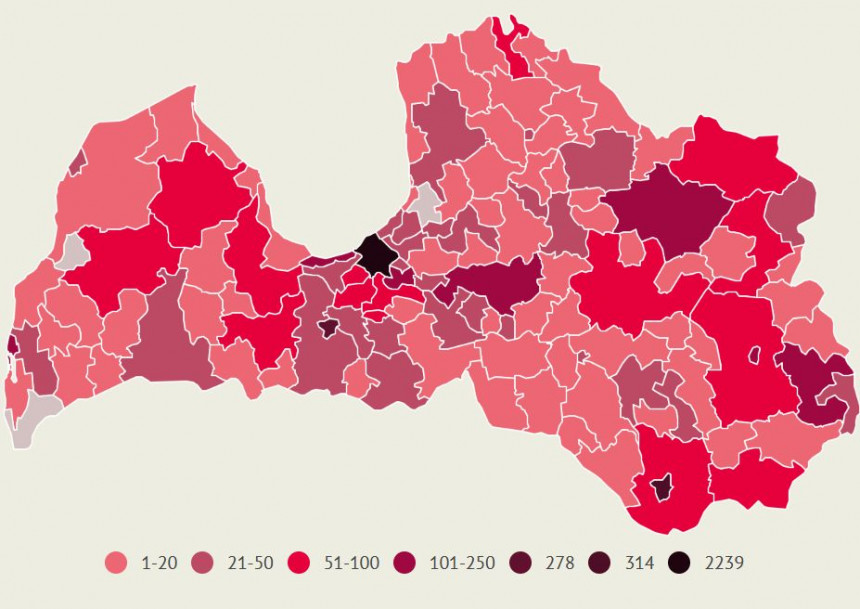 Šobrīd 32 pašvaldībās šis rādītājs ir augstāks, tostarp 13 tiek pārsniegts par 50%.