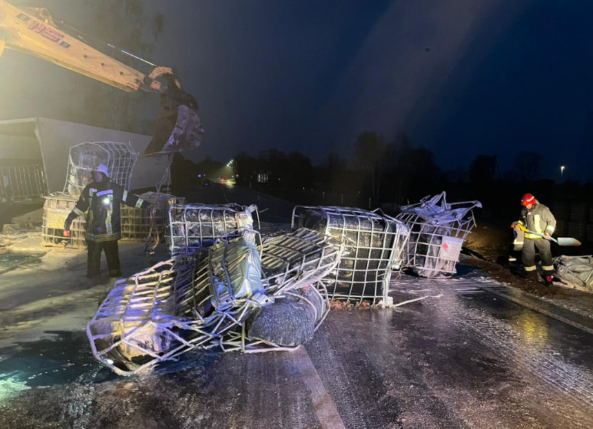 Automašīnas kravā ir konteineri ar ķīmisku vielu un konstatēta arī tās noplūde apmēram 30m2 platībā, informēja dienests.