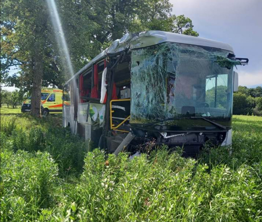 Negadījumā cietuši pieci cilvēki, no kuriem četri nogādāti slimnīcā. Viens no cietušajiem ir autobusa vadītājs.