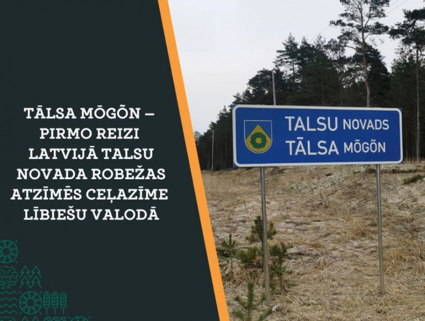 �� Tālsa mōgõn. Talsu novada pašvaldība uzstādījusi Latvijas vēsturē pirmo oficiālo ceļa zīmi, kurā, līdztekus latviešu valodai, redzams Talsu novada nosaukums lībiešu valoda.