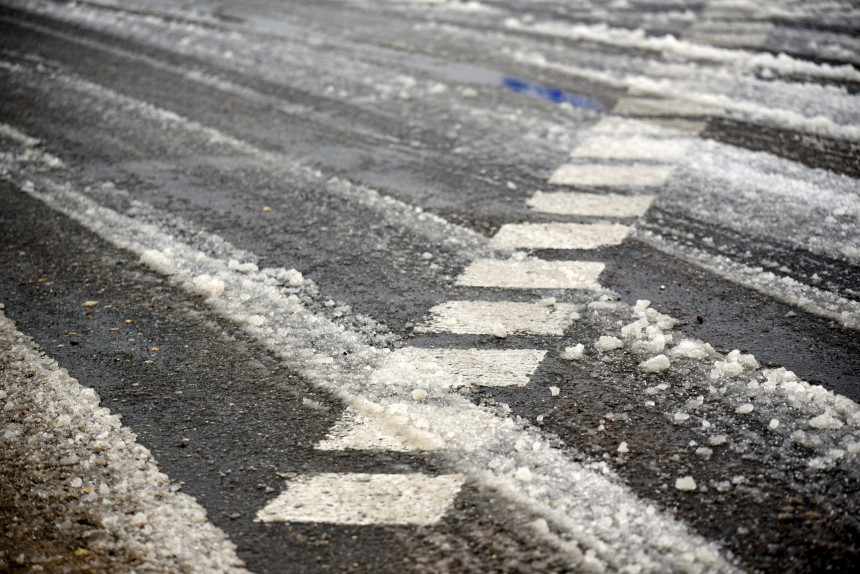 Slidenie ceļu posmi tiek kaisīti ar pretslīdes materiāliem.