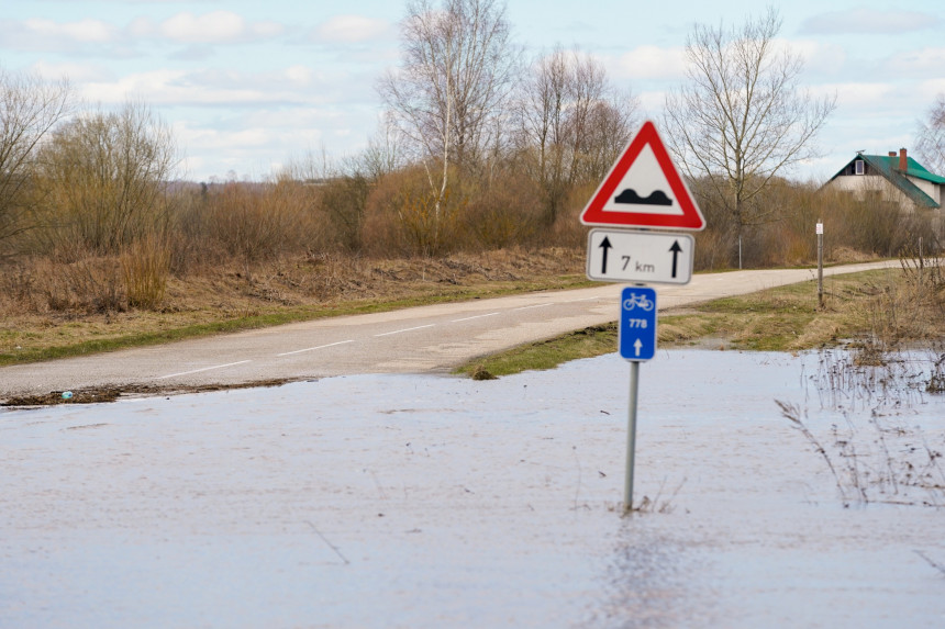 Autoceļš applūdis pie mājām "Saulītes", satiksme pa to ir slēgta.