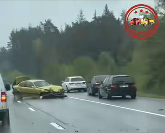 Aculiecinieku iesūtītajā video materiālā redzams dzeltens spēkrats, kuram ir smagi deformēta priekšpuse. Uz šosejas un tai blakus izmētātas atlūzas.