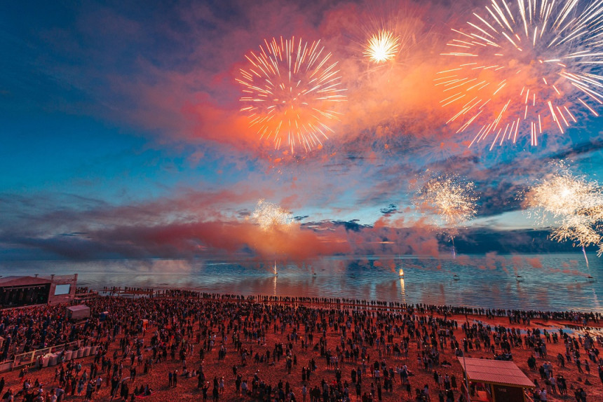 Vakara programmu Majoru pludmalē virs jūras atklās lidmašīnu akrobātiski lidojumi un augstākās pilotāžas paraugdemonstrējumi. No lielās skatuves Majoru pludmalē izskanēs lielkoncerts - uzstāsies latviešu rokmūziķis Ivo Fomins, hiphopa grupa “Singapūras satīns” un mūziķu apvienība - grupa “Dagamba”.