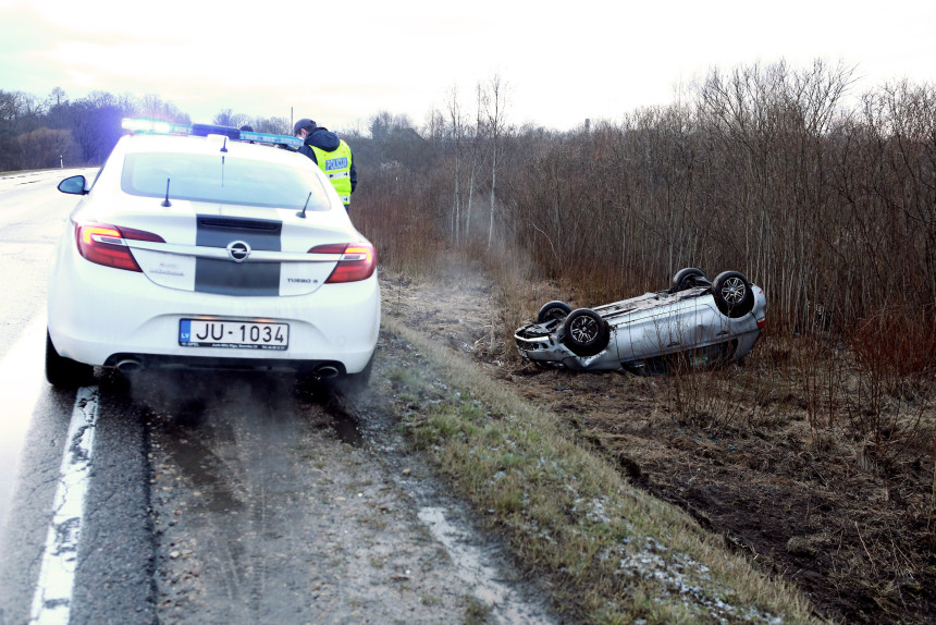 Autovadītāja netika galā ar automašīnas vadību, kā dēļ nobrauca no ceļa braucamās daļas un avarēja, skaidro policijā.