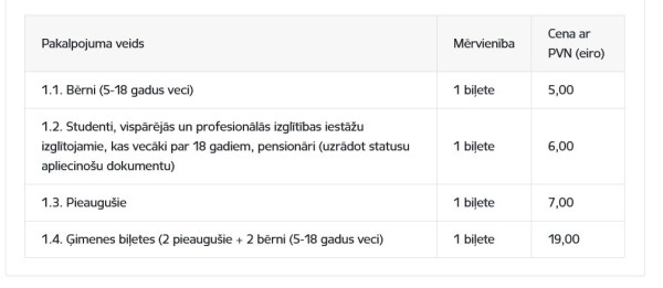Aktuālās cenas pieejamas mājas lapā daba.gov.lv