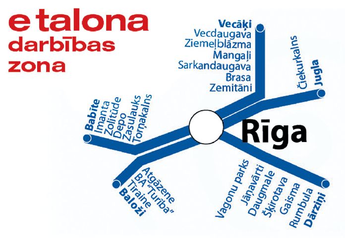 Ar e-talonu var norēķināties par braukšanu vilcienā Rīgas pilsētas robežās, tas ir – līdz vai no stacijām Babīte, Baloži, Dārziņi, Jugla un Vecāķi. Ja pasažieris vēlēsies turpināt braucienu līdz tālākai pieturai, viņam pie konduktora jāiegādājas biļete bez papildu piemaksas.