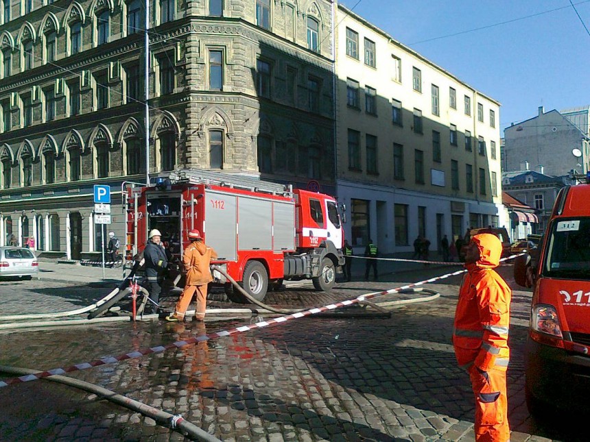 Notikuma aculiecinieki aģentūrai LETA stāstīja, ka apkārtējas ielas ir stipri piedūmotas, uz vietas strādā sešas ugunsdzēsēju automašīnas, notikuma vieta tiek norobežota.