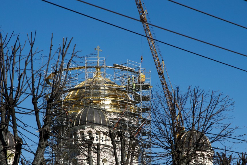 Rīgas Kristus Piedzimšanas pareizticīgo katedrāle ir neobizantiešu stilā 1876.-1884.gadā celta sakrālā ēka. Arhitekta Roberta Pflūga izstrādātais projekts paredzēja gan katedrāles zvanu torņa, gan centrālā kupola apzeltīšanu. 2011.gada vasarā tika apzeltīts katedrāles zvana torņa kupols, savukārt 2013.gada vasarā sākti sagatavošanās darbi centrālā kupola apzeltīšanai. Katedrāles centrālā kupola diametrs ir 13,5 metri, virsmas laukums ir 380 kvadrātmetri, savukārt augstums no zemes ir 40 metri.