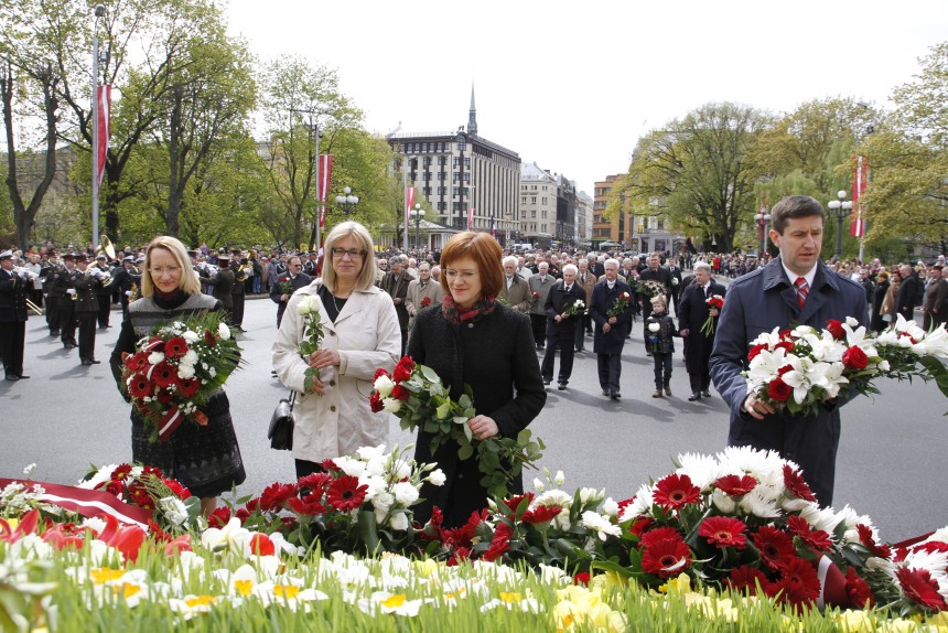 Ziedus pie Brīvības pieminekļa nolika valsts augstākās amatpersonas - Valsts prezidents Andris Bērziņš, Saeimas priekšsēdētāja Solvita Āboltiņa (V), Ministru prezidente Laimdota Straujuma (V), bijušie Valsts prezidenti, Ministru kabineta locekļi, Augstākās padomes deputāti, kuri balsoja par Latvijas Republikas Neatkarības atjaunošanu, ārvalstu diplomātiskais korpuss, Saeimas deputāti, Nacionālo bruņoto spēku vadība un sabiedrisko organizāciju pārstāvji.