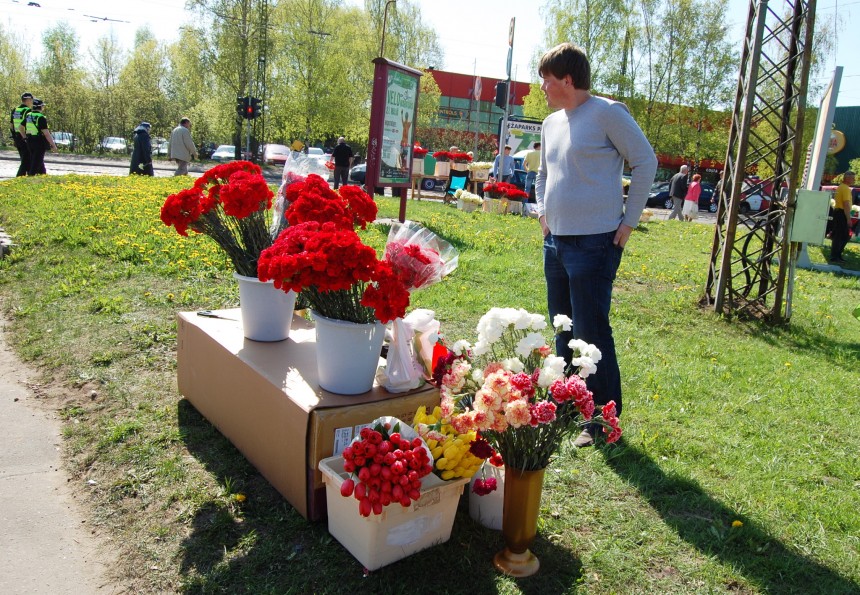 Šodien Uzvaras parkā Slokas ielas un Uzvaras bulvāra stūrī pulcējas daudzi puķu tirgotāji.