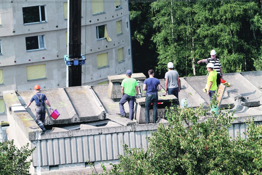 Daudzdzīvokļu mājā Rīgā, kurā nobīdījās plātne jumta pārseguma konstrukcijā un apdraudētās kāpņu telpas iedzīvotājiem apmēram diennakti vajadzēja padzīvot citur, dzīve atgriezusies ierastajā ritmā.