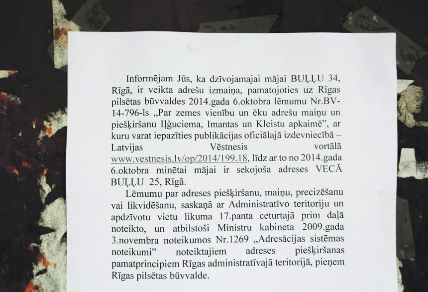 • Adreses maiņas faktu apliecinās oficiālajā izdevumā Latvijas Vēstnesis publicētais lēmums, līdz ar to atsevišķa izziņa nebūs nepieciešama. Tomēr ir iespējams vērsties Rīgas pilsētas būvvaldē un pieprasīt izziņu par mainīto adresi. Izziņu sagatavo un izsniedz 10 dienu laikā bez maksas.