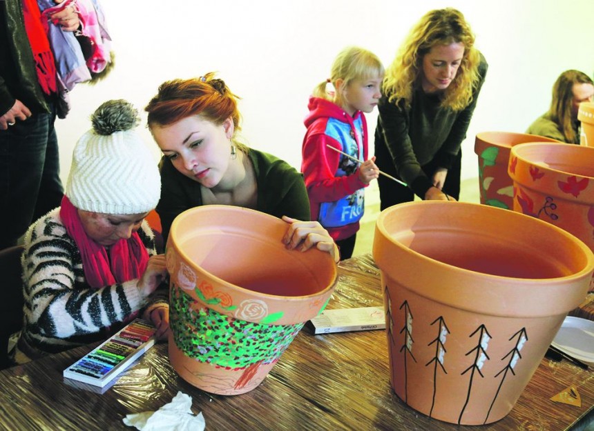 Rīgā, Kalnciema kvartāla tirdziņa izstāžu galerijā Bērnu paliatīvās aprūpes biedrība sestdien rīkoja labdarības akciju – Ziemassvētku eglīšu podu apgleznošanas radošo darbnīcu.