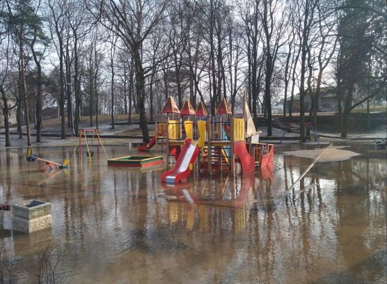 Tā kā vakar laika apstākļi strauji mainījās un nosacīto salu ir nomainījis daudz siltāks laiks, tad daudzviet Rīgā uz ielām un parkos ir izveidojušās milzīgas peļķes.