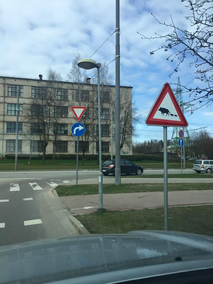 Sociālajos tīklos cilvēki ziņo, ka Rīgā pie tirdzniecības centra "Alfa" parādījusies visai neparasta ceļa zīme.
