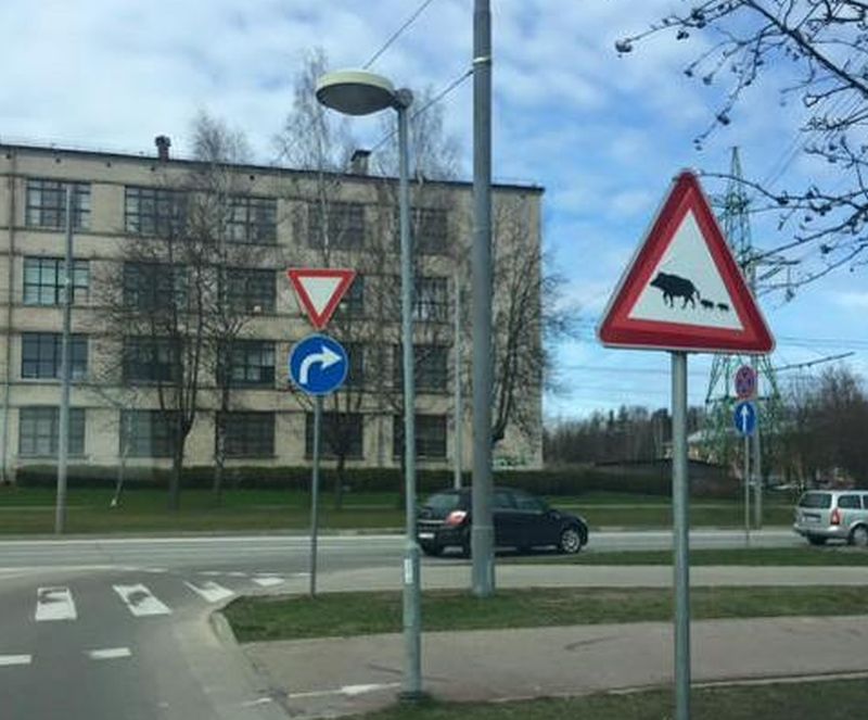 Departaments kā spilgtāko piemēru min uzlīmes, uz kurām attēlots mežacūku siluets, šķērsojot ielu.