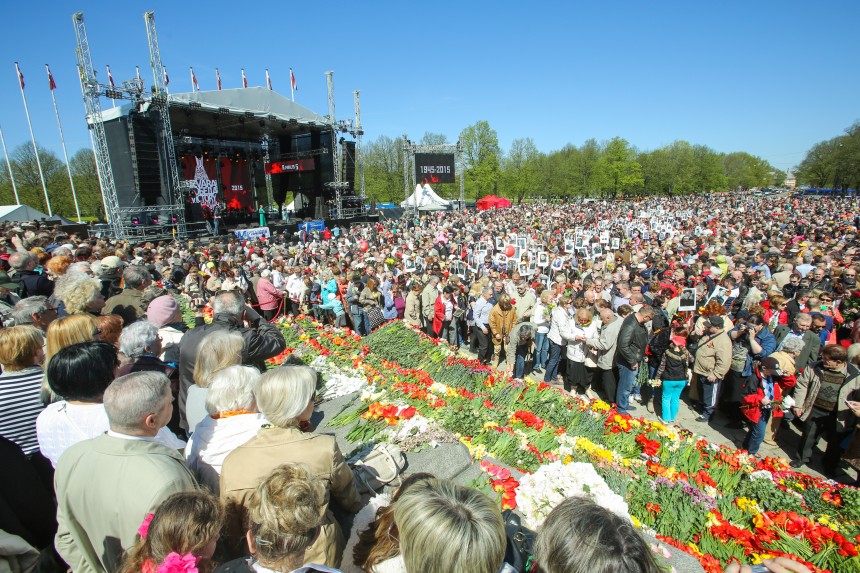 Kā ziņots, Rīgā šodien norisinās vairāki pasākumi, kas veltīti Krievijā svinamajai "Uzvaras dienai" un nacisma sagrāvei, kā arī Otrā pasaules kara upuru piemiņai. Visas dienas garumā tradicionālās svinības par godu nacisma sagrāvei Uzvaras parkā rīko biedrība "9.maijs.lv".