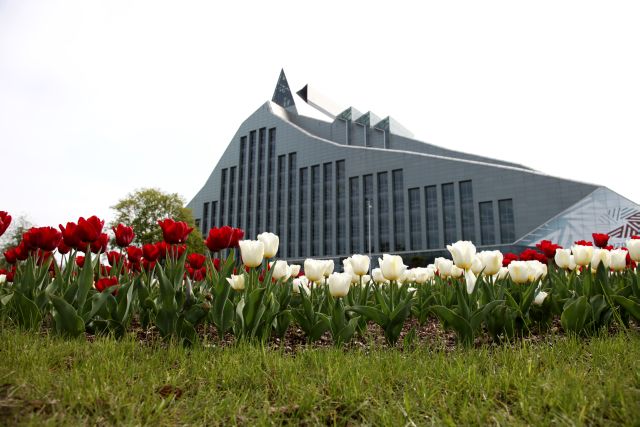 Latvijas Nacionālā bibliotēka (LNB) savā twitter kontā ziņo priecīgu vēsti - pie bibliotēkas uzziedējušas 17 000 tulpes.