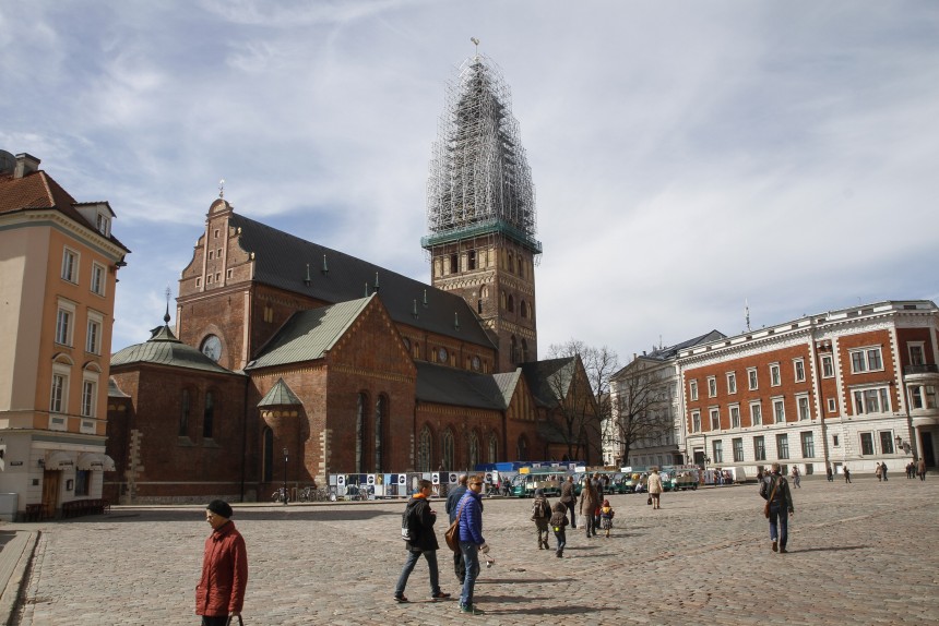 Ap 20 cilvēku šodien pulcējušies Doma laukumā, lai protestētu pret plāniem izvietot Latvijā citās Eiropas Savienības (ES) valstīs nonākušos bēgļus, novēroja aģentūra LETA.