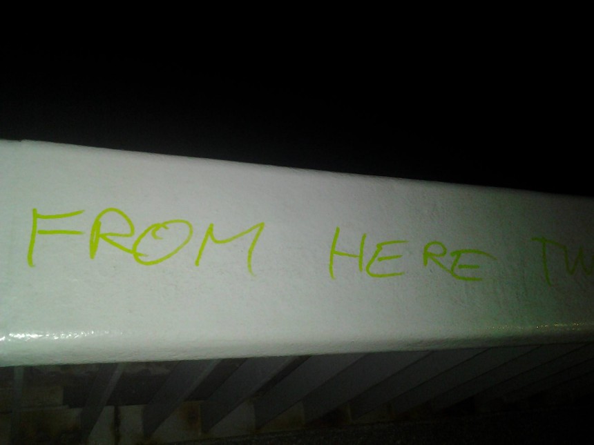 4.augustā pēc pusnakts Rīgas pašvaldības policijas darbinieki ar Videonovērošanas centra kameru starpniecību uz Vanšu tilta pamanīja jaunieti, kura aprakstīja tilta margas.