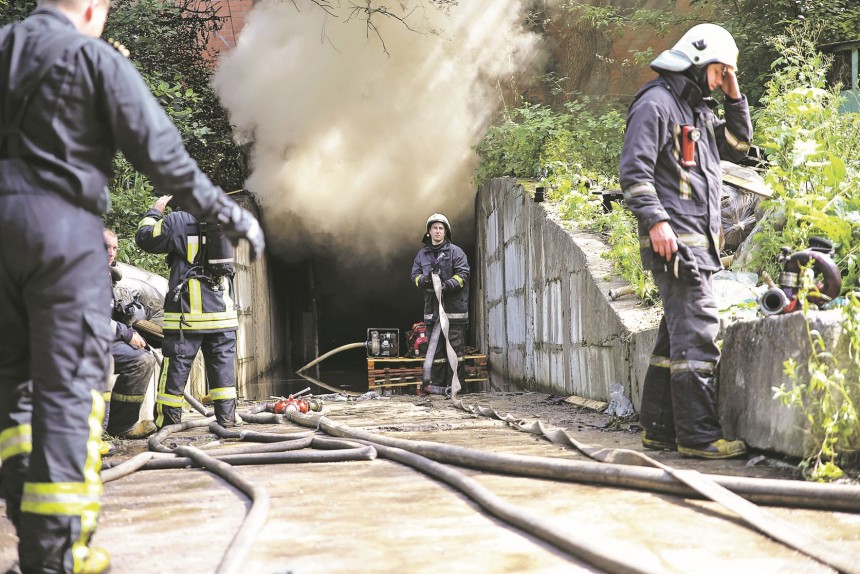 Kādreizējā Rīgas radiorūpnīcas augstceltne Imantā ir vien nokvēpusi pēc jūnijā notikušā ugunsgrēka, bet vakar nekas neliecināja, ka šajā vietā gandrīz nedēļu tika dzēsts ugunsgrēks, kas izcēlās naktī uz 2. augustu.