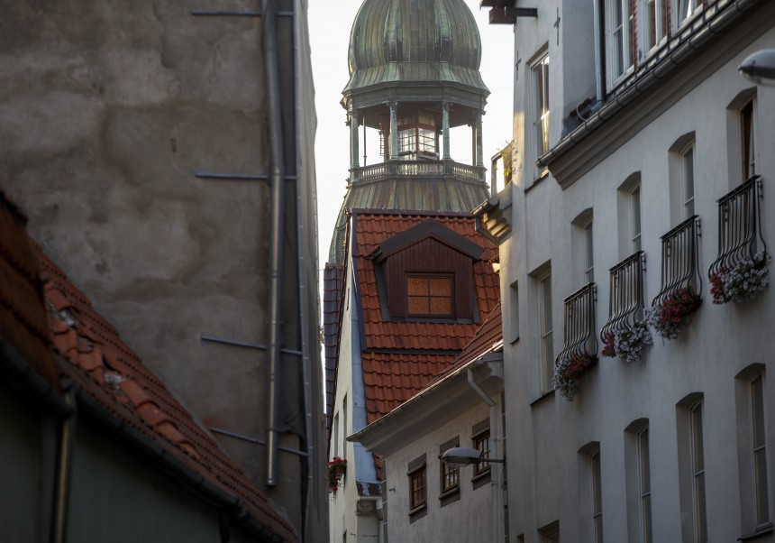 Vecrīgā, Kalēju ielā blakus Krievu drāmas teātrim, no divstāvu ēkas jumta nokritušas koka kāpnes, kas tur aizmirstas būvniecības laikā pirms 26 gadiem, sestdien vēstīja raidījums “LNT Ziņas".