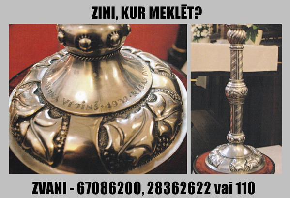 Šī gada 15. augustā Rīgā, Herdera laukumā tika nozagti divi altāra sudraba svečturi.