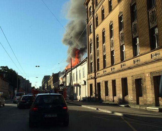 Šorīt Rīgas centrā, Matīsa ielā 54, aizdegusies koka ēka, aģentūrai LETA apstiprināja Valsts ugunsdzēsības un glābšanas dienestā (VUGD).