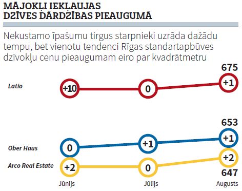 Mājokļu tirgus apskatos par aizgājušās vasaras mēnešiem Arco Real Estate akcentē dzīvokļu piedāvājuma sarukumu par trešo daļu, salīdzinot šā gada augustu ar pagājušā gada augustu. Tēmu turpina Ober Haus par zemesgrāmatā reģistrēto darījumu skaita sarukumu tajā pašā mājokļu segmentā: augusts pret augustu dod –23%, šā gada astoņu mēnešu kopējais rādītājs ir –16%. Citu toņkārtu izmanto Latio, ka «gandrīz visos tirgus segmentos vērojams neliels aktivitātes pieaugums ne tikai Rīgā, bet arī daļā reģionu lielo pilsētu. Pieejamāki ir kļuvuši kredītresursi – pēdējos mēnešos lēnām aug darījumu skaits, kuros mājokļu iegāde notiek ar hipotekārā kredīta finansējuma palīdzību», bet turpat tālāk Latio šo toņkārtu maina. Izrādās, ka «vietējie pircēji ļoti pārdomāti pieņem lēmumus par nekustamā īpašuma iegādi, nereti no šādas domas atsakoties īsi pirms līguma noslēgšanas», un kopumā «nekustamā īpašuma tirgus dalībnieku noskaņojums, neskatoties uz kreditēšanas aktivitātes pieaugumu, paliek nogaidošs».