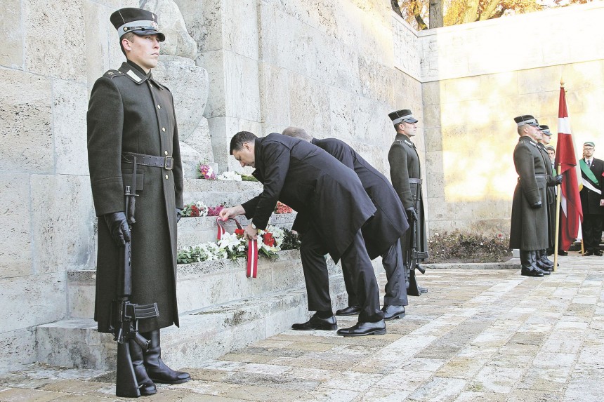 Pirms simt gadiem, 1915. gada 28. oktobrī, apglabāja pirmos kritušos Latvijas strēlniekus – Jēkabu Timmu, Jāni Gavenasu un Andreju Stūri. Tagad svētvietā atdusas vairāk nekā 870 strēlnieku. Rīgas Brāļu kapi ir Latvijas izcilākais un lielākais monumentālais ansamblis. Latvijas Valsts prezidents Raimonds Vējonis aicināja ikvienu smelties strēlnieku pašaizliedzīgo cīņas sparu un nākamajām paaudzēm nodot dzimtenes mīlestību. «Tautas stiprums nav matemātiski aprēķināms. Liela tauta nenozīmē, ka tai ir stiprs gars. Latviešu strēlnieki un brīvības cīnītāji ir pierādījuši, ka esam liela tauta un stipra tauta. Mums visiem nepieciešams pieminēt varoņus un pārņemt viņu gara stiprumu,» uzrunā klātesošajiem pauda Nacionālo bruņoto spēku (NBS) komandieris ģenerālleitnants Raimonds Graube.