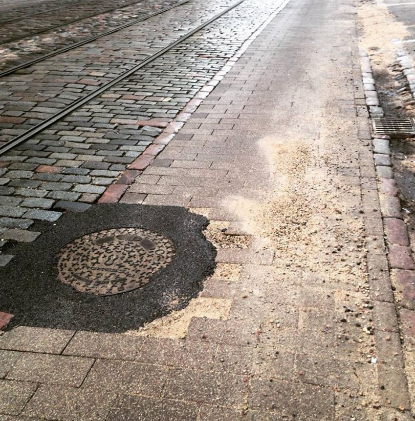 Arvien biežāk sociālo tīklu lietotāji neizpratnē publicē attēlus no nesen remontētās Kr. Barona ielas, kur dažuviet glaunais ielu bruģis uzlikts kā pagadās.