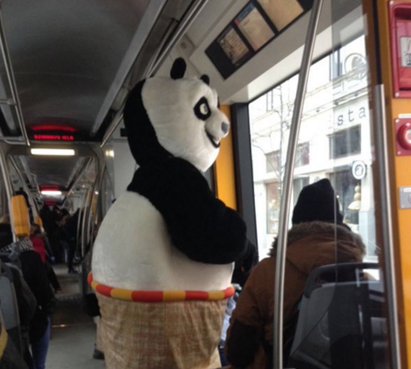 “Braukšana tramvajā paliek daudz interesantāka, kad tajā iekāpj kung fu panda,” ziņo ļaudis sociālajos tīklos.