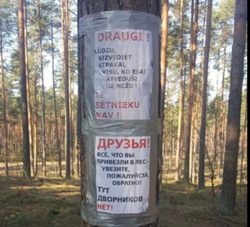 “Labs sludinājums vienā no Rīgas mežiem. Taču ne visi tā dara. Sakopsim pilsētu pēc ziemas! Sūtiet informāciju par nelegālām izgāztuvēm, atkritumu kaudzēm un piemēslotām teritorijām. Mēs vai nu piespiedīsim zemes īpašnieku sakopt, vai nu paši sakopsim. Noteikti pievienojiet adresi vai vietu kartē. Foto var arī nepievienot, bet, ja ir – sūtiet,” vēstī Rīgas domes priekšsēdētājs, kurš ierakstu papildinājis arī ar kādu attēlu, kurā redzamais uzraksts aicina ļaudis sakopt meža teritoriju.