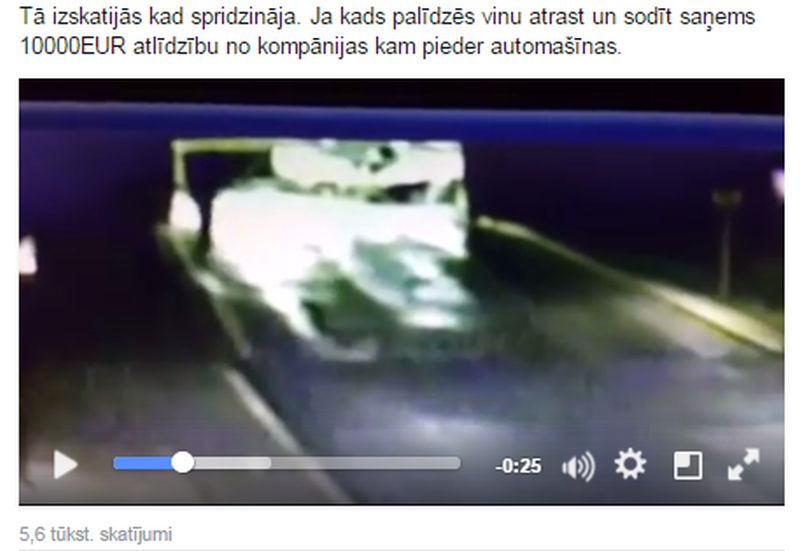 “Tā izskatījās kad spridzināja. Ja kāds palīdzēs viņu atrast un sodīt, saņems 10000 EUR atlīdzību no kompānijas kam pieder automašīnas,” - ar šādu ierakstu videomateriālu papildinājis K. Caune.