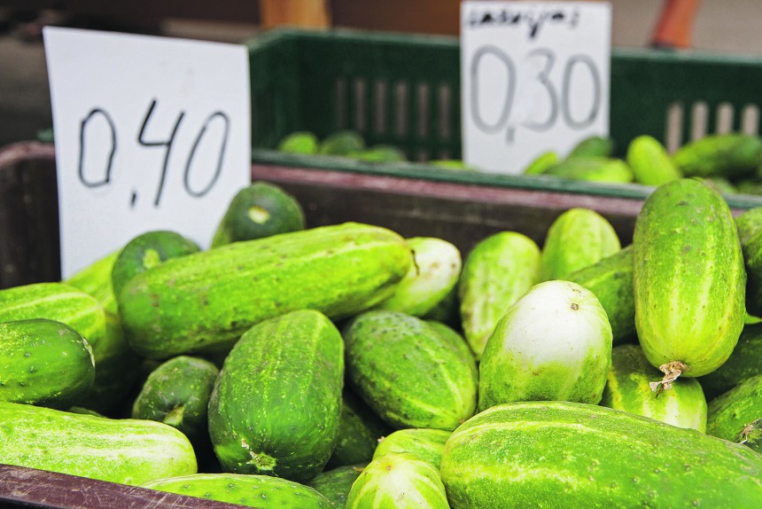 Rīgas Centrāltirgū šonedēļ gurķiem šīs vasaras zemākā cena – tie nopērkami, sākot no 30 centiem kilogramā.