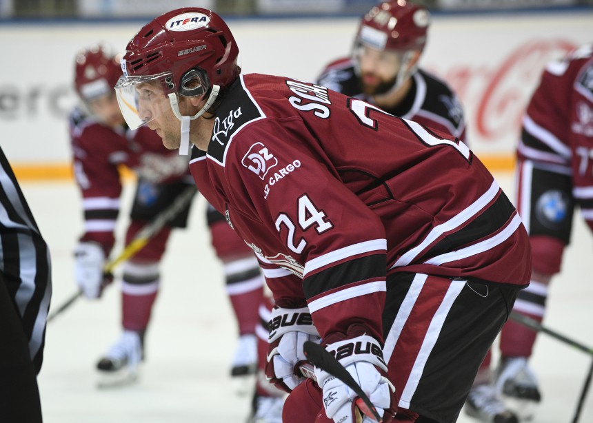 43' Miks Indrašis, kurš iepriekšējo maču izlaida neapmierinošā snieguma dēļ, izdara metienu aizsarga aizsegā pēc zilās līnijas šķērsošanas, un tas sāncenšu vārtsargam Igoram Saprikinam sagādā lielas grūtības.